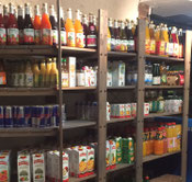 Boissons: divers jus de fruits, eaux minérales en petites et grandes bouteilles, boissons énergisantes.